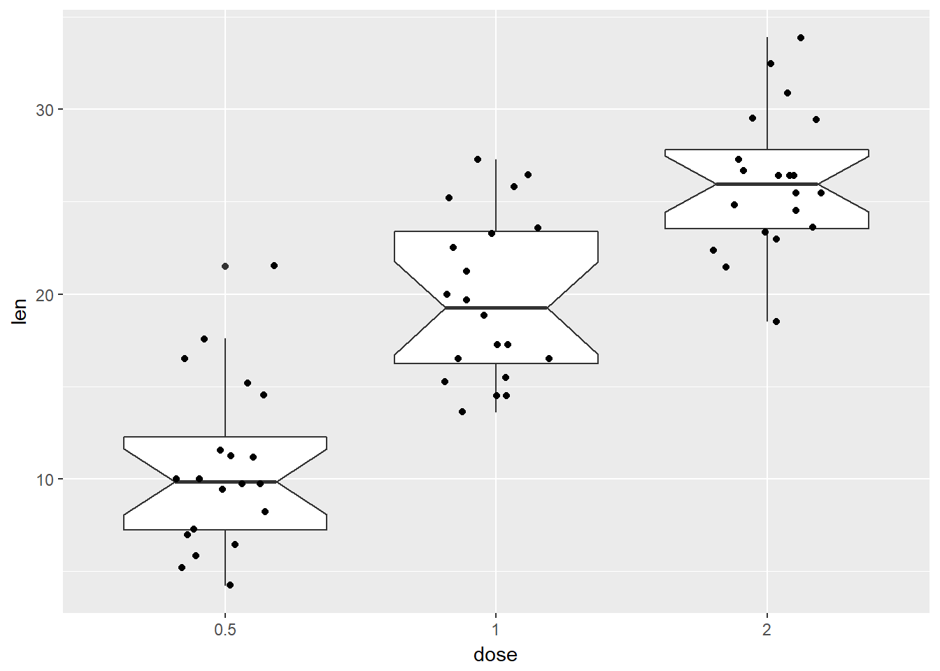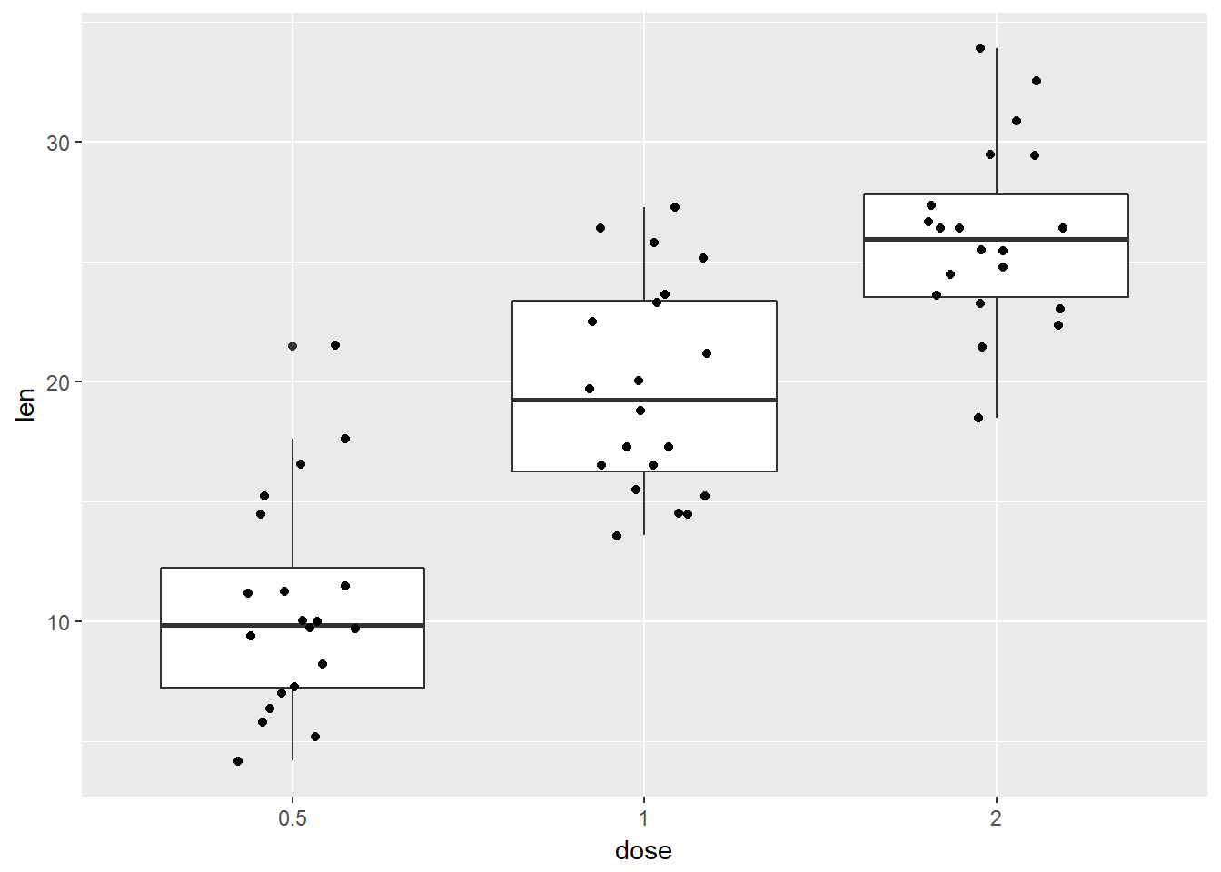 ggplot(ToothGrowth, aes(x=dose, y=len)) +